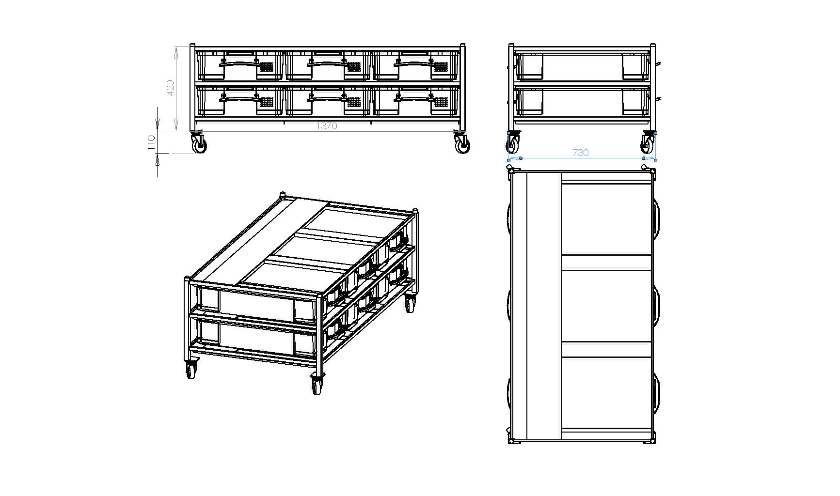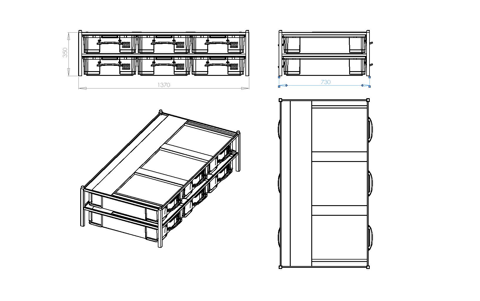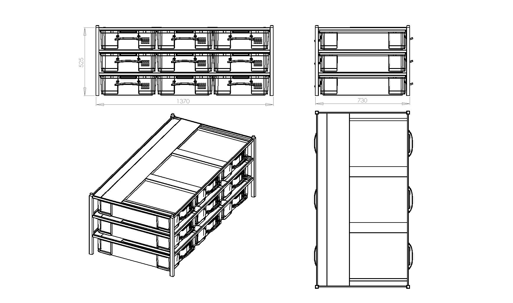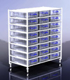 This is the replacement system for the large Contico tub, utilising the 33 ltr Really Usefull tub. Available in sections as detailed below or as a complete system ready to go.Start your system with a castor base and then mix and match with either the single, double or triple levels to build a complete bespoke system. If you require a mix of any of the other systems to create a multi size system- please call as we can usually accomodate