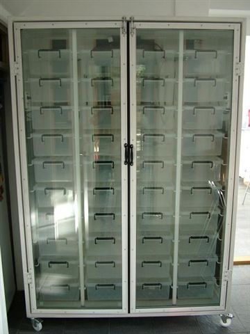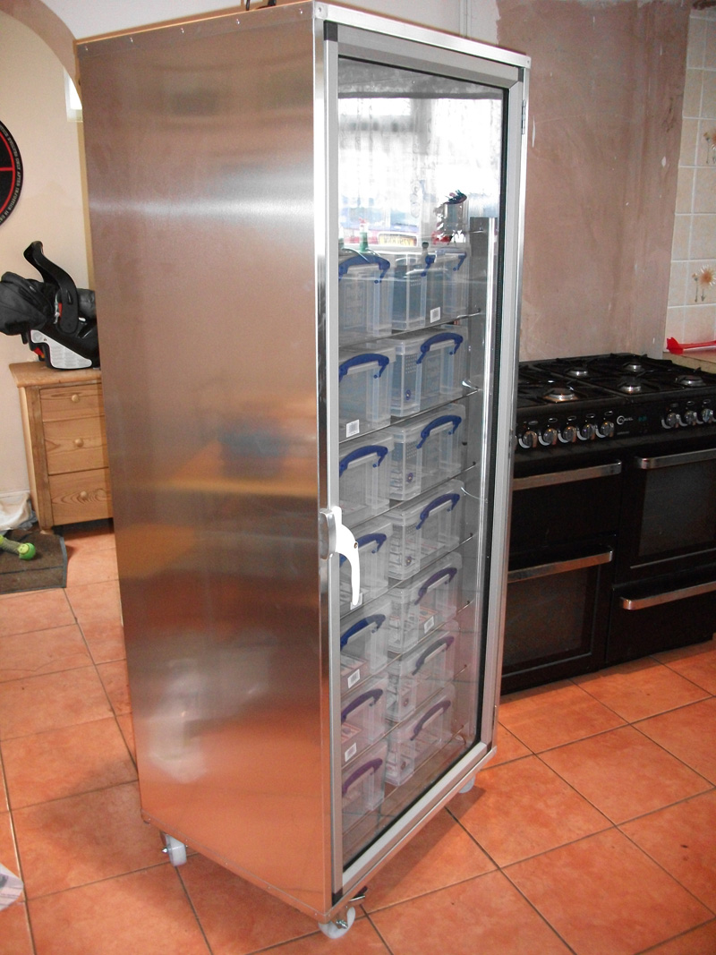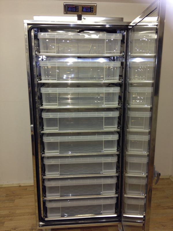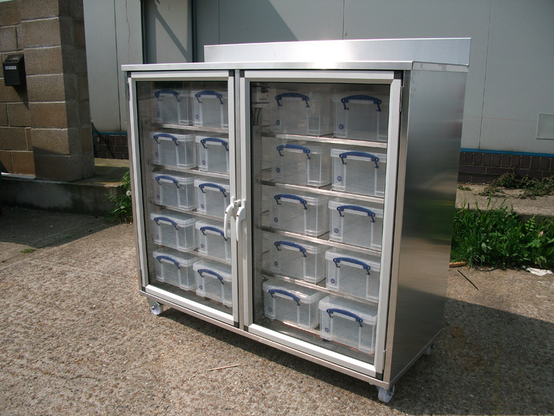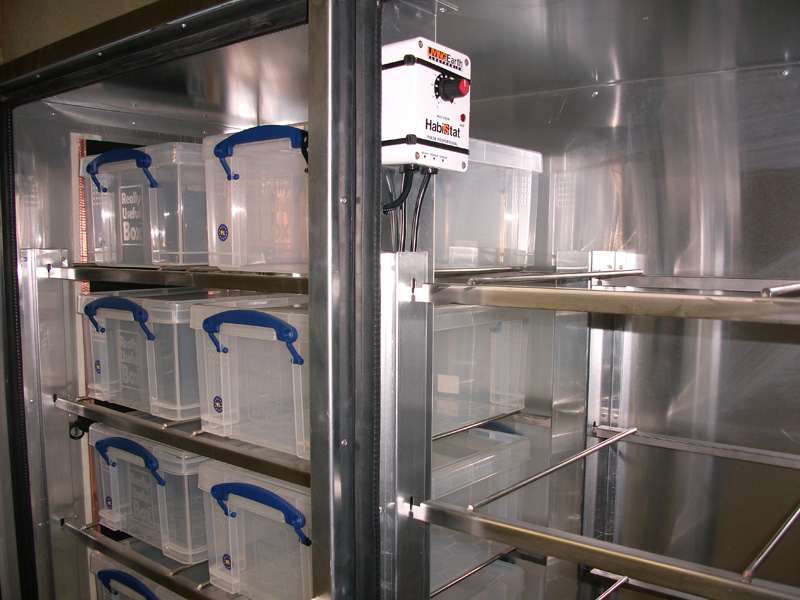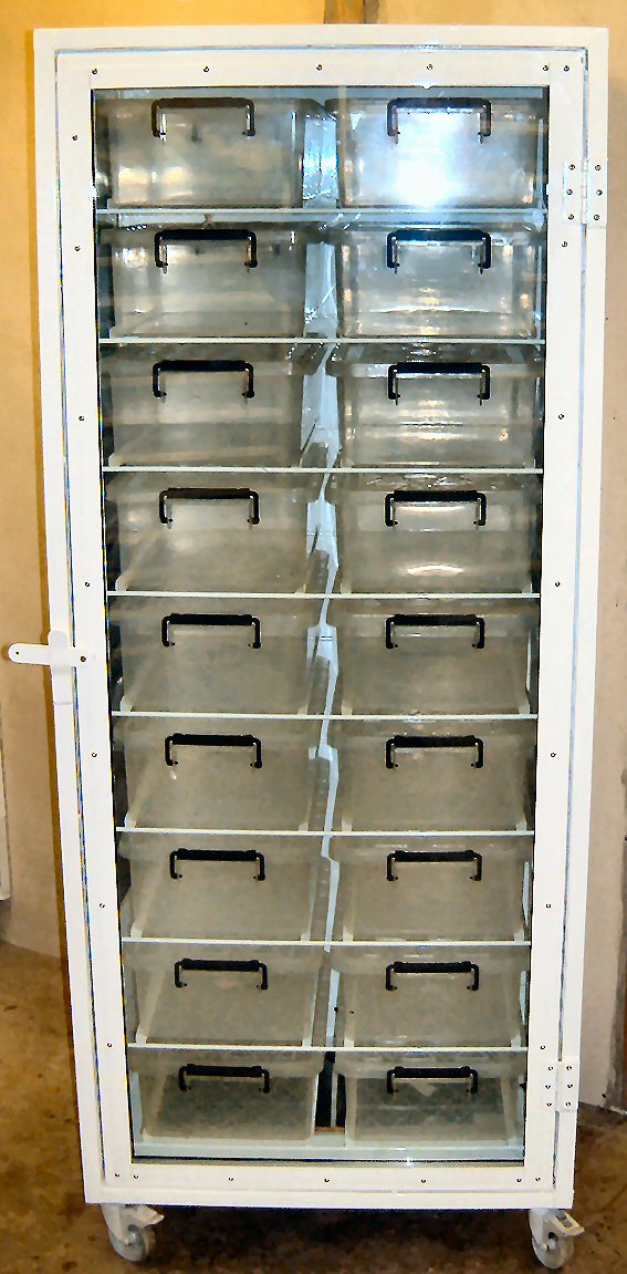 We have continued to develop this great range of professional quality incubators over the past couple of years culminating in the aluminium units pictured below. Being snake breeders ourselves we are only too aware of the value of the clutches that are produced toaday so we use tried and tested Habistat pulse proportional stats controlling heat mats to maintain the tempreture. There may be more elegant heating options available but we have found that this system is the most reliable and with contents valued in the 10s of thousands, reliability is of the upmost importance. We produce a standard range as deailed below but are also able to build to your exact requirements as the 20 tub unit at the bottom of the page testifies.