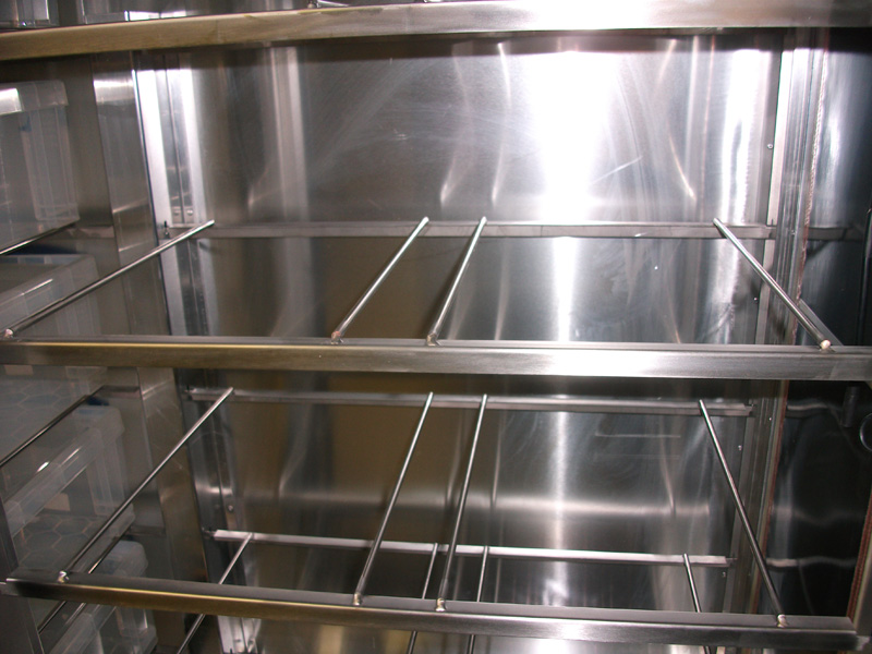 All aluminium and stainless steel contruction with removable shelves and twin zone stats. Stainless steel top work surface. |